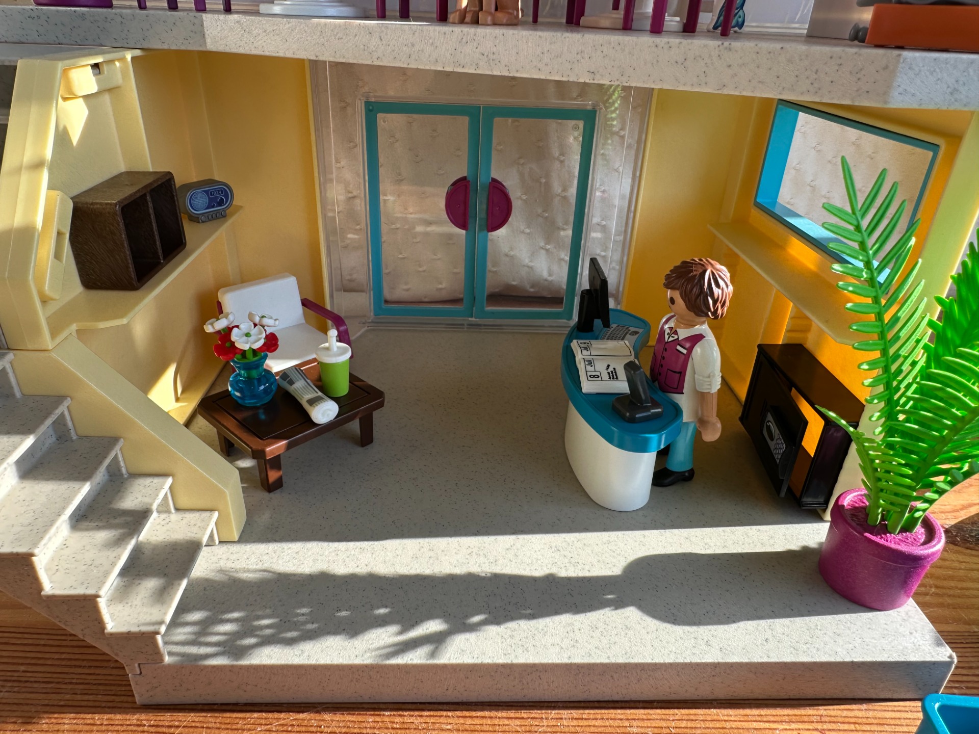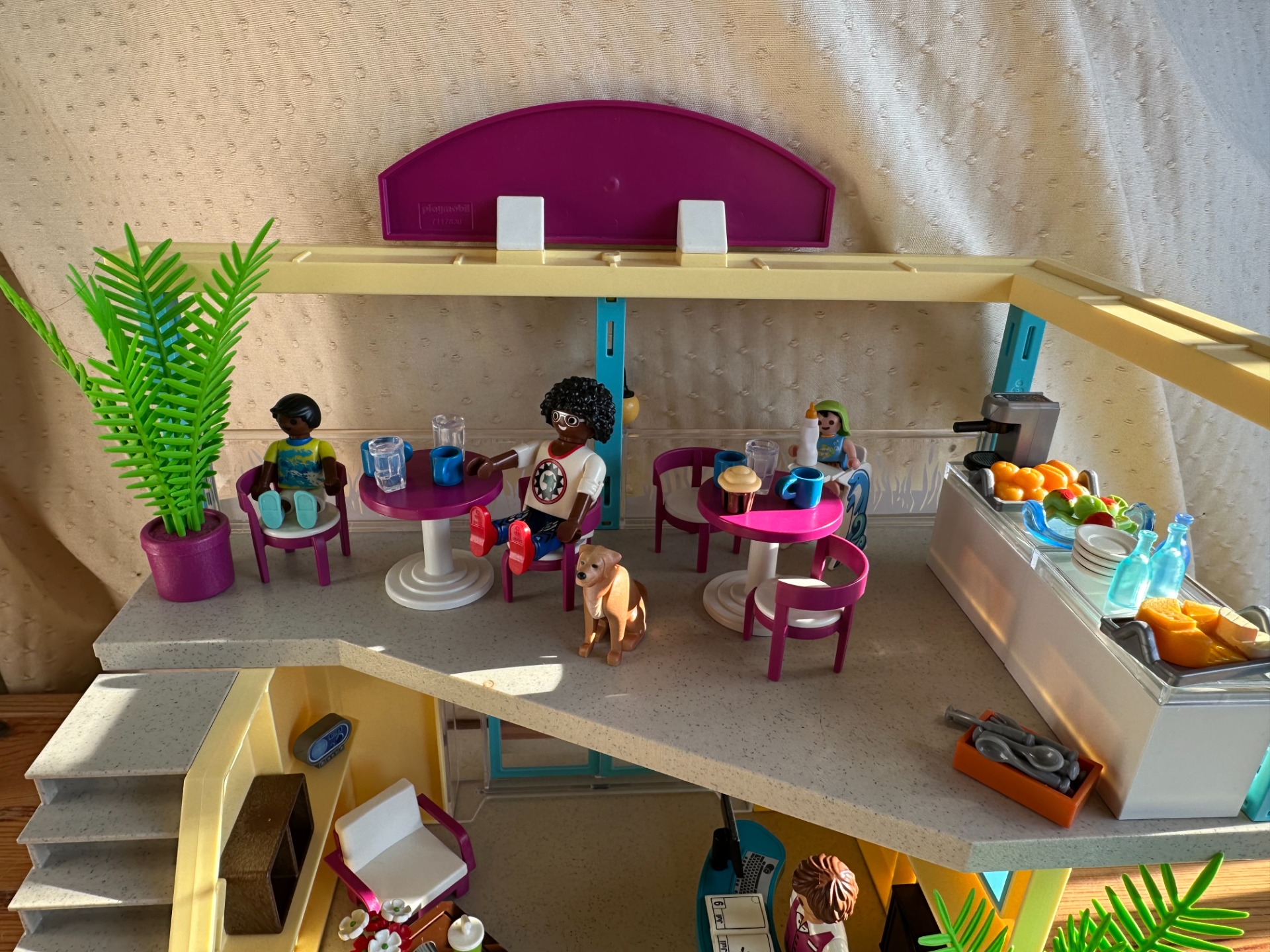 Playmobil hotel met ontbijt en zwembad.